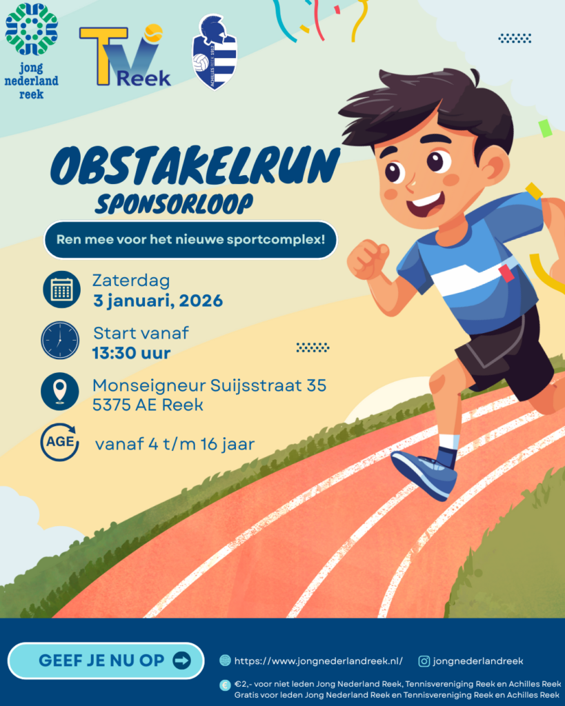 Samen met Achilles Reek en de Tennisvereniging Reek organiseert Jong Nederland Reek een sponsorloop om geld op te halen voor het nieuwe sportcomplex!